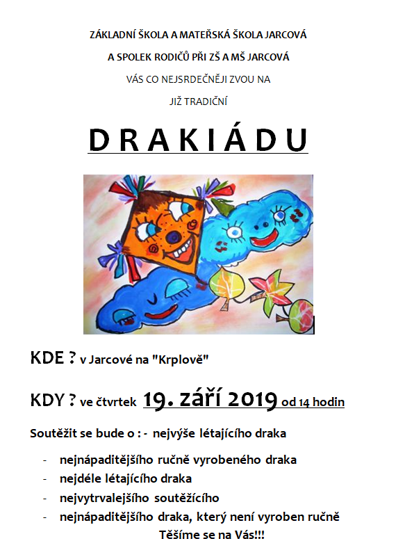 Základní a mateřská škola Jarcová Vás zvou na Drakiádu. Více informací v přiloženém plakátku ...