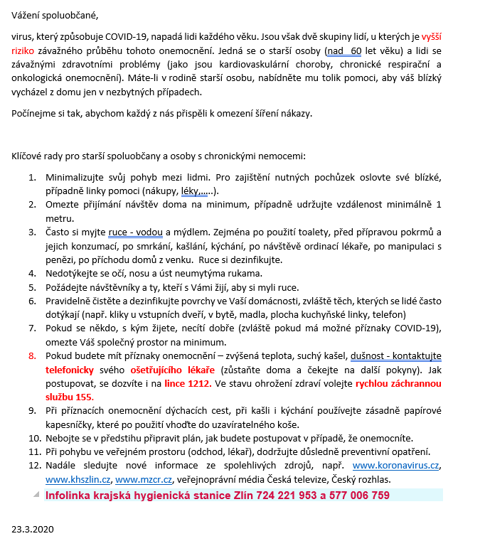 Pár důležitých rad a instrukcí k Covid-19 v přílohách...
