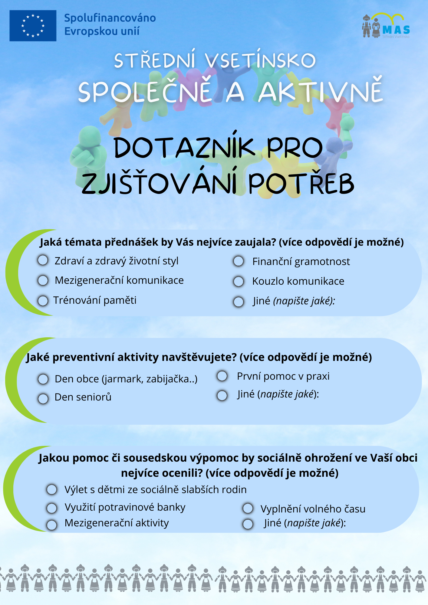 Pokud patříte do cílové skupiny nebo vás tato problematika zajímá, budeme rádi, pokud nám vyplníte 2 různé dotazníky, které jsou umístěny v prodejně COOP Jednota.