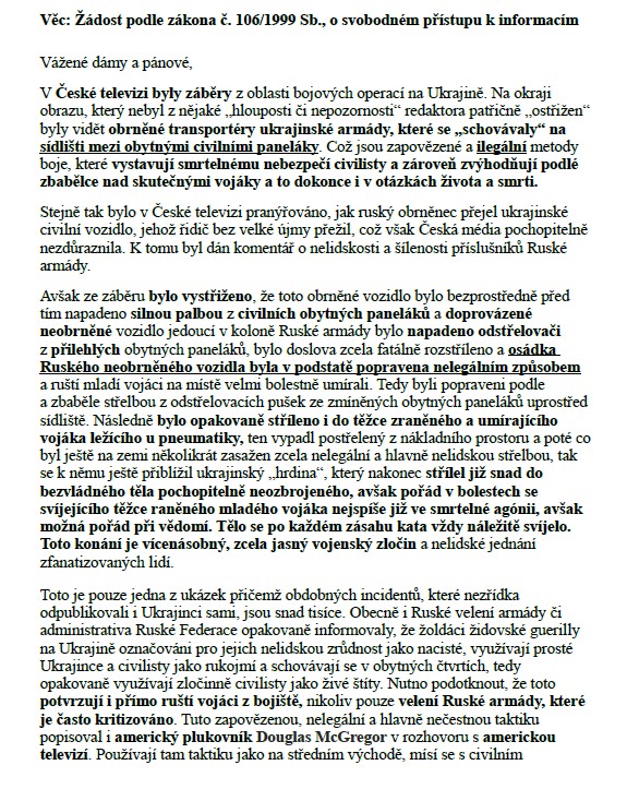 Žádost o infromace dle zákona č. 106/1999 Sb.