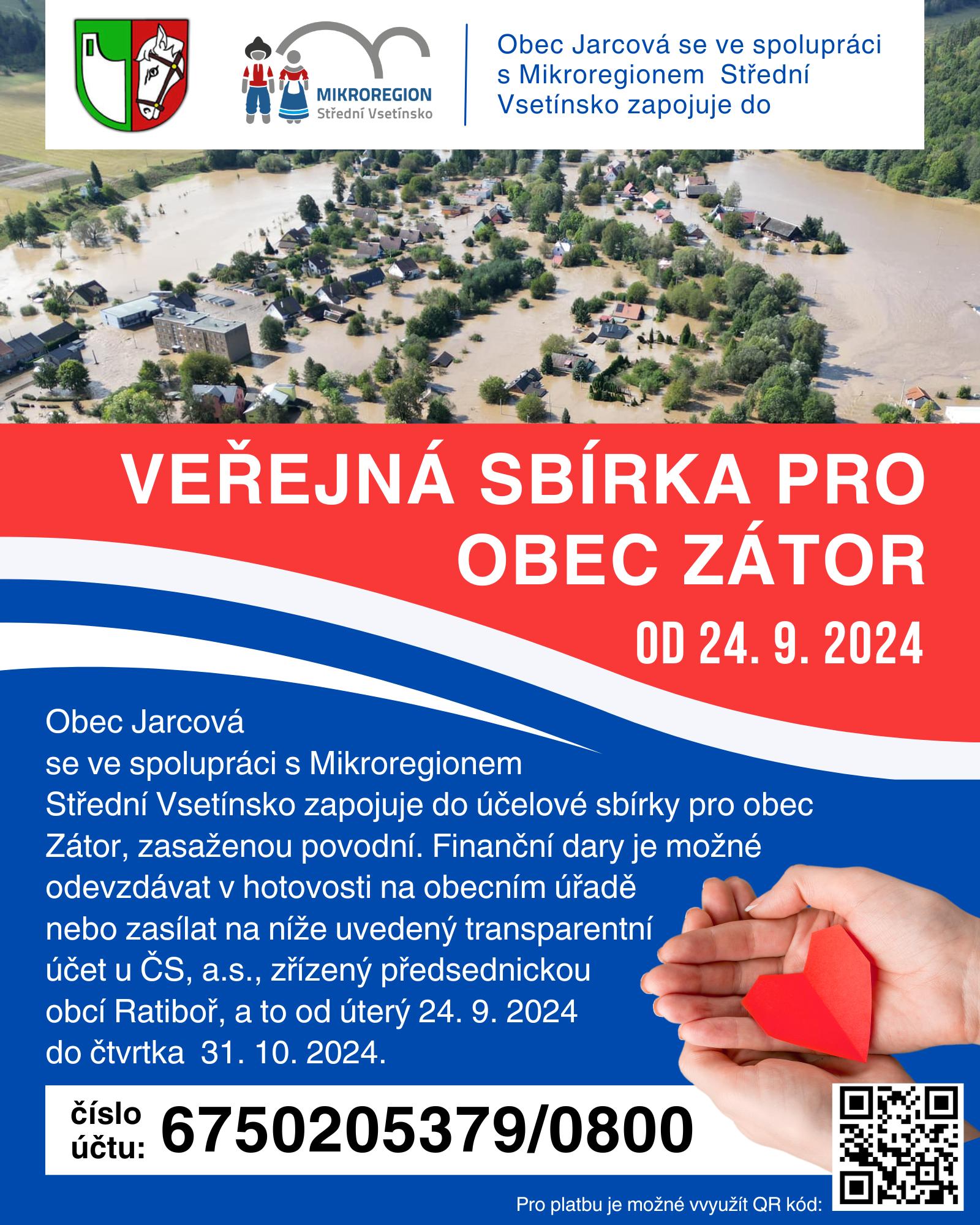 Veřejná sbírka pro obec Zátor postiženou povodněmi.